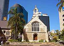 St. Stephen's Cathedral, close to many modern buildings in central Brisbane