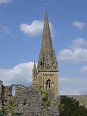 Llandaff Cathedral with an imposing, modern statue of Christ, Gothic arches and a truly spectacular church interior