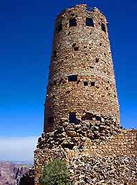 This small museum and Grand Canyon information center was originally a trading post and today houses an array of telescopes for viewing the spectacular gorge and its colorful intricacies. If you are coming from the park's Southern Entrance, the Watchtower will be the last attraction on your drive down Desert View Drive towards the Eastern Entrance. The 70-foot / 21-meter high stone Watchtower includes a glass-enclosed observatory, where you will find various telescopes and remarkable views covering the massive Vermilion Cliffs, Painted Desert, Marble Canyon and the Colorado River.