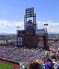 Sports stadium in central Denver, attracting large crowds of cheering spectators.
