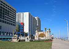 The historic clock tower, standing next to the Hilton Daytona Beach Oceanfront Resort.