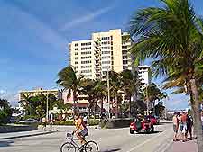 The atmosphere in the beach district is considerably more relaxed than in other districts in Fort Lauderdale, as locals and outsiders come together to enjoy the pleasures of Florida's 23 miles / 37 km of scenic coastline. Fort Lauderdale's beach district is a popular place for residents from other Florida cities to take a weekend break or summer vacation. The lengthy beach area is flanked by a long 'boardwalk' which is ideal for strolling, 'blading' or generally being seen. There are many shopping and entertainment precincts in the Fort Lauderdale beach district, sandwiched between the surfless sea (there is no tide due to the Bahamas reefs) and the inter-coastal waterway, which is packed with million dollar yachts and adds a further attraction to the area.