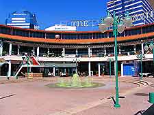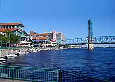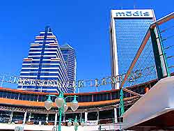 Entrance to Jacksonville Landing, showing the tall Modis Tower.