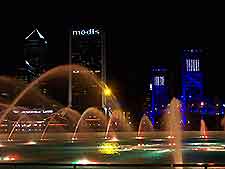 Stunning view of the city's Friendship Fountain, illuminated at night.