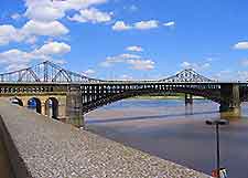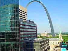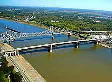 The city's historic Eads Bridge, opened in 1874 and spanning the Mississippi River.
