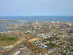 Further view of the city, showing the Atlantic Ocean in the distance.