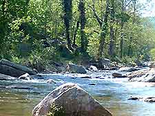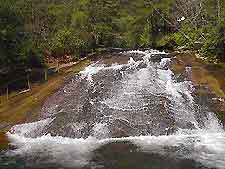 The Sliding Rock at Pisqah National Forest, an impressive natural sloping slab which has become the perfect waterslide for all the family.