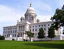The grand Rhode Island State Capitol Building, one of the most notable and largest landmarks in Providence, constructed from 1895 to 1904.