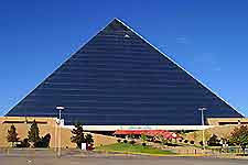 Built in 1991, the 32-story Pyramid is taller than the Statue of Liberty, making it an unmissable feature of the city's skyline. It is the third largest pyramid in the world and has a base the size of six football pitches. The Pyramid formerly featured a 21,000-seat capacity arena and was home to the MBA Memphis Grizzlies. Situated on the banks of the Mississippi River, this major Memphis entertainment complex hosted sporting events, family shows and concerts. As of 2010 the Pyramid has been leased by Bass Pro Shops for a megastore.