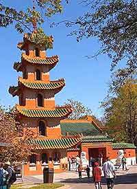 View of the striking pagoda, close to the panda exhibit at Memphis Zoo.