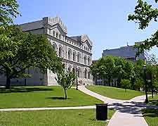 The entrance of the State Capitol Building, featuring a grand arch and elaborate decoration.