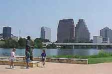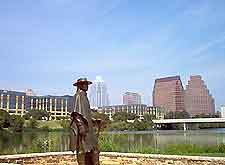 Image of the Stevie Ray Statue, a famous blues guitarist from the area.