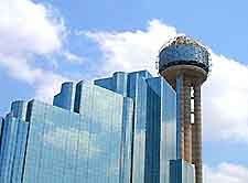 At night the dome on top of the Reunion Tower lights up and inside there is also is an observation deck, with spectacular views.