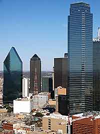 Skyscrapers in Dallas are clustered in the heart of the city.