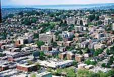 Photo of the Seattle cityscape, showing the city's many areas of green.